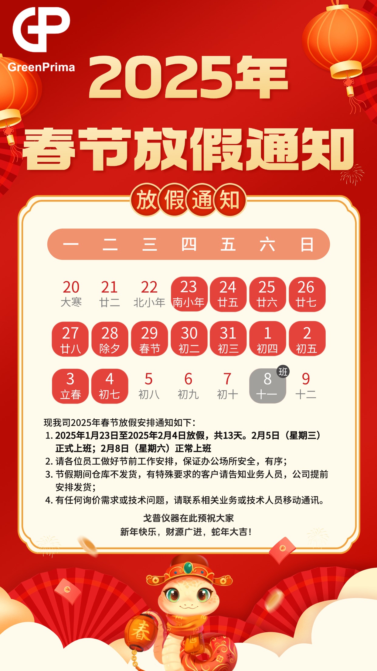 戈普通知|2025年春節(jié)放假通知